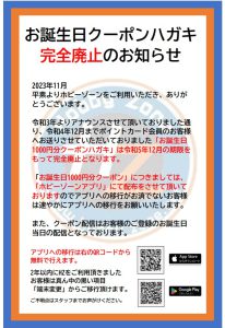 【お誕生日クーポンハガキ 完全廃止のお知らせ】
